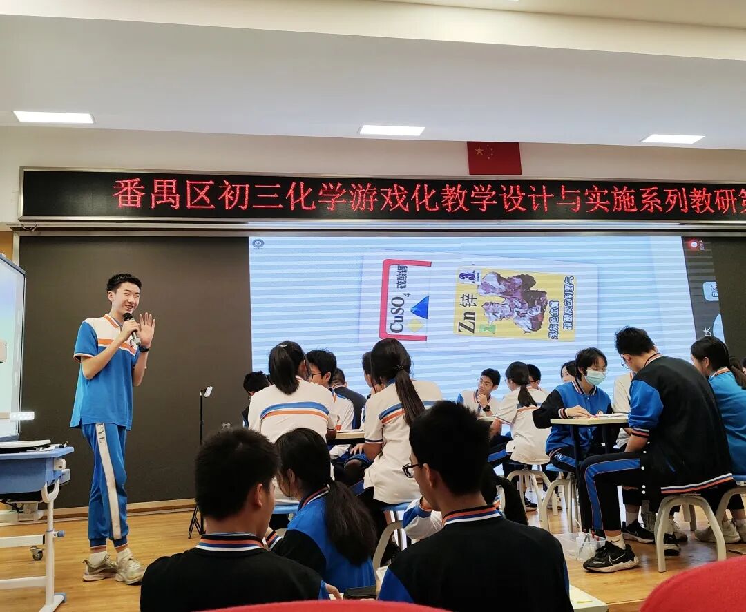 编者按:2023年12月8日下午,番禺区初三化学游戏化教学设计与实施系列教研第二场活动在番禺区南雅学校举行。本次教研系列活动是深化游戏化教学实践的有效探索,随着“融·乐”课堂模式的逐步完善,游戏化教学也在不断迭代更新,这需要广大教师们集思广益,积极构建,让更丰富的提升学科素养的教学范式落地开花。 现转载相关推送,供大家交流学习。 游戏增学习动力,融乐促素养发展——初三化学游戏化教学设计与实施系列教研第二场为落实新课标对培养学科素养的要求,推动我区“融·乐课堂3.0”模式的深入探索和研究,2023年12月8日下午,番禺区初三化学游戏化教学设计与实施系列教研第二场活动在番禺区南雅学校举行,全区初三化学教师参加活动。 课例展示,精彩纷呈 番禺区华南碧桂园学校戴诗玲老师在课例一《金属的化学性质》(第一课时)中以鉴别真假黄金引入新课,带领学生比较常见金属在空气中反应的难易和剧烈程度,让学生自主实验探究镁锌铁铜与酸的反应情况,初步比较出常见金属的活动性强弱。最后呼应真实情景,让学生根据课程内容提出鉴别真假黄金的方法。戴老师在课例中两次应用华南师范大学钱扬义教授团队研发的“520化学扑克牌”游戏体系,让学生通过扑克牌速度比拼的方法巩固知识。游戏规则简单明了,操作性强,学生在有趣的游戏中收获了知识和乐趣,课堂气氛热烈。