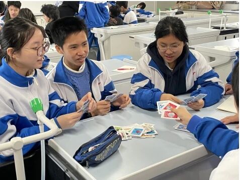 图17 学生评价词云图 同学们也纷纷用文字或视频表达了本次课程的心得体会。 潘俊楹同学:化学科普课如同一把神奇钥匙,为我打开微观世界的大门。通过扑克牌游戏,我认识了化学元素和物质,让我了解到身边的所见都与化学有关,化学无处不在,如平时爱喝的汽水中含有二氧化碳,这堂课让我对化学有了新的认知,也让我对化学产生了浓厚的兴趣,更让我明白科学就在身边。 饶嘉瑜同学:化学科普课最让我印象深刻的是“元素扑克牌”游戏。原本觉得元素周期表遥远而枯燥,但通过设计巧妙的扑克牌,在轻松愉快的“打牌”过程中,我不知不觉就记住了元素的名称、符号甚至一些特性,笑声中就把元素知识装进了脑海。这种寓教于乐的方式,让冰冷的化学符号瞬间变得生动活泼。让我深刻感受到,化学并非高深莫测,它就蕴藏在我们身边,更好的迎接初三的化学学习。 徐梓滨同学:这次学校举办的化学科普课课程十分有趣,课堂上老师教课生动有趣,同学们也都积极配合,课堂氛围十分和睦。其中有一个活动是玩扑克牌令我记忆犹新,扑克牌上是各种元素,我们要根据相应的规则来进行游戏,游戏十分好玩,不仅能活跃课堂氛围,也能让我们更加的深刻理解相应的元素。 叶子乐同学:每一节课都有不同的内容,让大家完全沉浸在课堂氛围中,不但有实验做,还有超多好玩的扑克牌游戏,我在课堂中学到了很多化学知识,这次课程给我们的初中生活留下浓墨重彩的一笔! 正值初二升初三的暑假,老师们可以指导准初三的学生们怎么玩520化学桌游,提前预习、学习。学生们可以和家长、朋友们在家一起玩520化学桌游,作为家庭亲子活动,不需要很多的化学背景知识,而是在玩中的过程中学习化学知识、培养兴趣。 Part.05 520化学桌游 长期以来,化学科普主要通过纪录片、动画等理论形式进行,存在着“只学不做”等弊端,缺乏相对轻松愉快的实践性、互动性、游戏化的学习方式。 对此,钱扬义教授团队历经20年的实践探索研制出了“520化学桌游”,面向各年龄段的学生,提供兼具教育性、游戏性、技术性和艺术性的化学教育桌面游戏,致力于将游戏化教学与化学科普、化学符号学习相结合,从而推动化学科普、激发学习动机、解决学科难点、践行素质教育。 经过数次更新迭代,“520化学桌游”已具备内涵丰富的书籍与配套教具,包括大小册子两本书(教师版和学生版)、自主开发的6款游戏,以及配套的5副扑克牌、1对骰子和1副飞行棋,使学生能够在健康的环境下有效学习化学、普及科学知识,实现“玩中学”“快乐学”“随时随地学”的目标,破解化学用语学习难题。