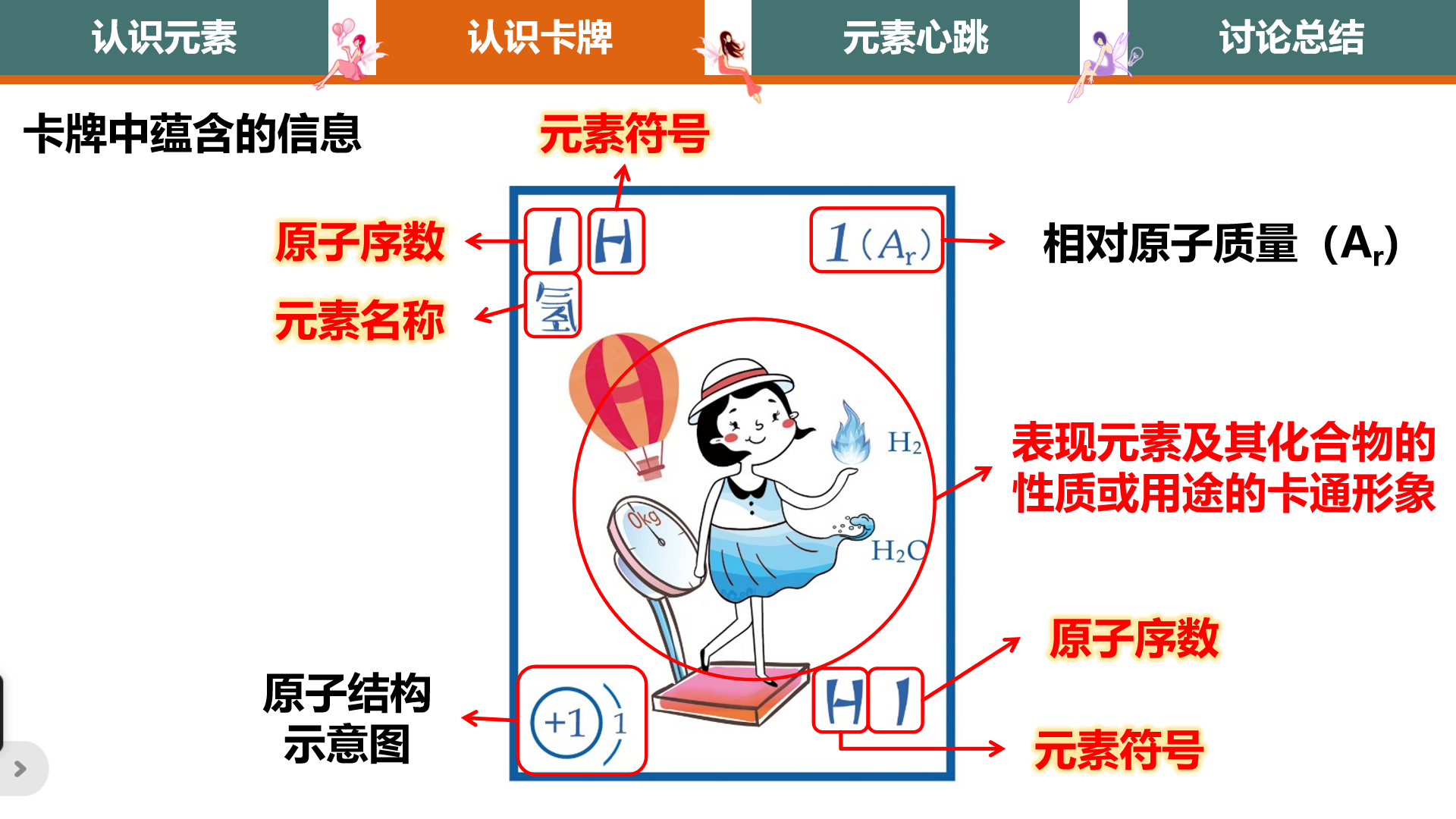 图1-2 课程介绍 Part.01 课程介绍·520化学元素岛 为了让学生初步了解常见的化学元素的书写、名称及用途,钱扬义教授的研究生们依托520化学扑克牌中的元素卡牌开展了“520化学元素岛”课程。在上课的过程中,教师首先介绍了元素的书写规则,之后带领学生探索并介绍元素牌的牌面信息,读取各个元素的符号、序号、用途等信息,让学生学会将元素分为三类:金属元素、非金属元素、稀有气体元素。学习知识后,教师带领同学们进行“520元素心跳”游戏,帮助他们更好地记忆与巩固所学的元素知识。
