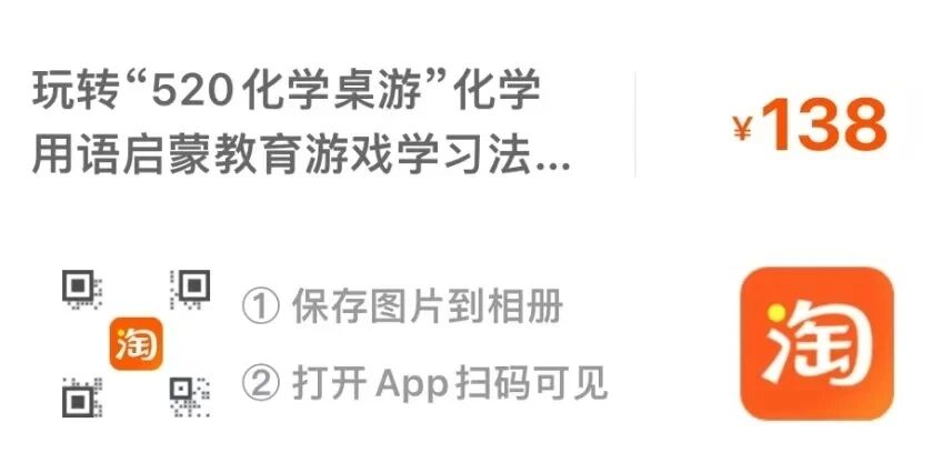 图10 《玩转“520化学桌游”:化学用语启蒙教育游戏学习法》购买二维码 (或在淘宝搜索“520化学桌游”即可购买) | ||||