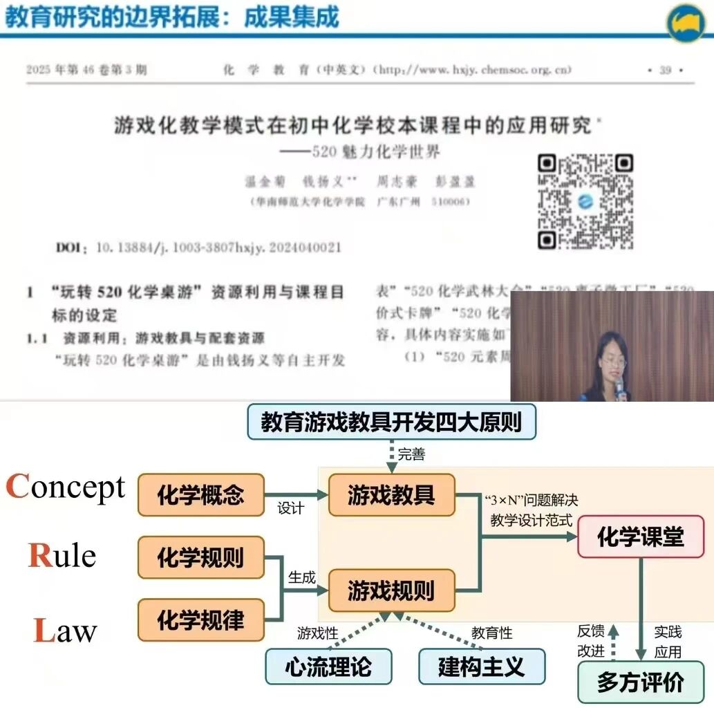 图3-4 温金菊老师讲解手持技术实例 02 游戏化教学-注入趣味活力 游戏化教学并非 “娱乐化”,而是需紧扣课标要求,以初中化学 “化学用语启蒙” 课为例,通过 “规则设计贴合化学规律、胜负机制关联知识掌握”,让游戏过程成为知识内化的过程。这种模式同样可迁移至其他学科,为全学科教师提供 “趣味 + 实效” 的教学思路。
