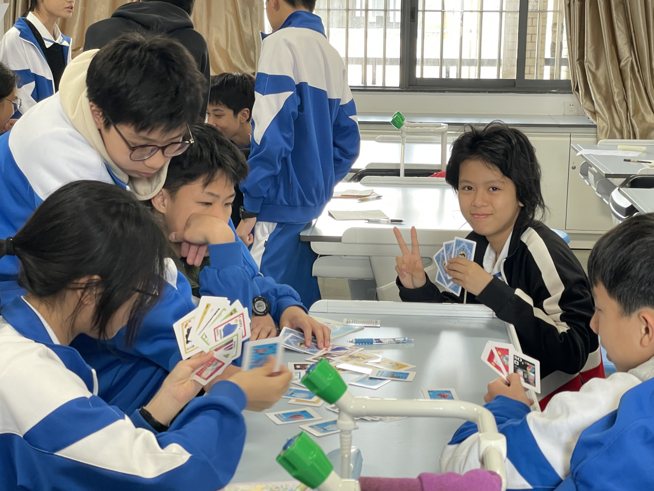 | 课程介绍 初中化学学习内容多,学习时间短,知识记忆的规律少,所以学生学习难免有较大的困难。游戏化教学是一种引导学生产生学习兴趣的课程类型,教师通过将化学知识和游戏化教学相结合,辅以恰当的游戏规则和方法,能让知识变得更加有趣生动。 钱扬义教授硕士研究生刘颖彤、林晓培、黄佳仪、郑加越受佛山市华英学校邀请,为初二年级20个班级的一千多名学生开展为期一个学期的游戏化学习的化学科普课程,共8个课时,钱扬义教授全程指导。此次科普课程包括“520化学元素岛”“520化学武林大会”“520火之舞”等系列课堂。通过游戏卡牌与趣味实验,学生了解了前20号元素的名称与书写、常见物质及其分类,知道了铁在氧气中燃烧、焰色反应的实验现象与生活应用,为学生未来的化学学习打下扎实基础。 本次课程以钱扬义教授工作室研发的最新版《玩转“520化学桌游”:化学用语启蒙教育游戏学习法》与化学趣味实验为设计基础,520化学桌游与实验的融合,不要求学生具有系统的化学知识,而是可以在玩中学、随时随地学化学知识,将化学用语与化学实验融合,让初二的学生在化学用语的学习过程中对化学学习产生兴趣,是趣味十足的化学科普课堂。