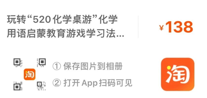 图24《玩转“520化学桌游”:化学用语启蒙教育游戏学习法》购买二维码 (或在淘宝搜索“520化学桌游”即可购买) | ||||