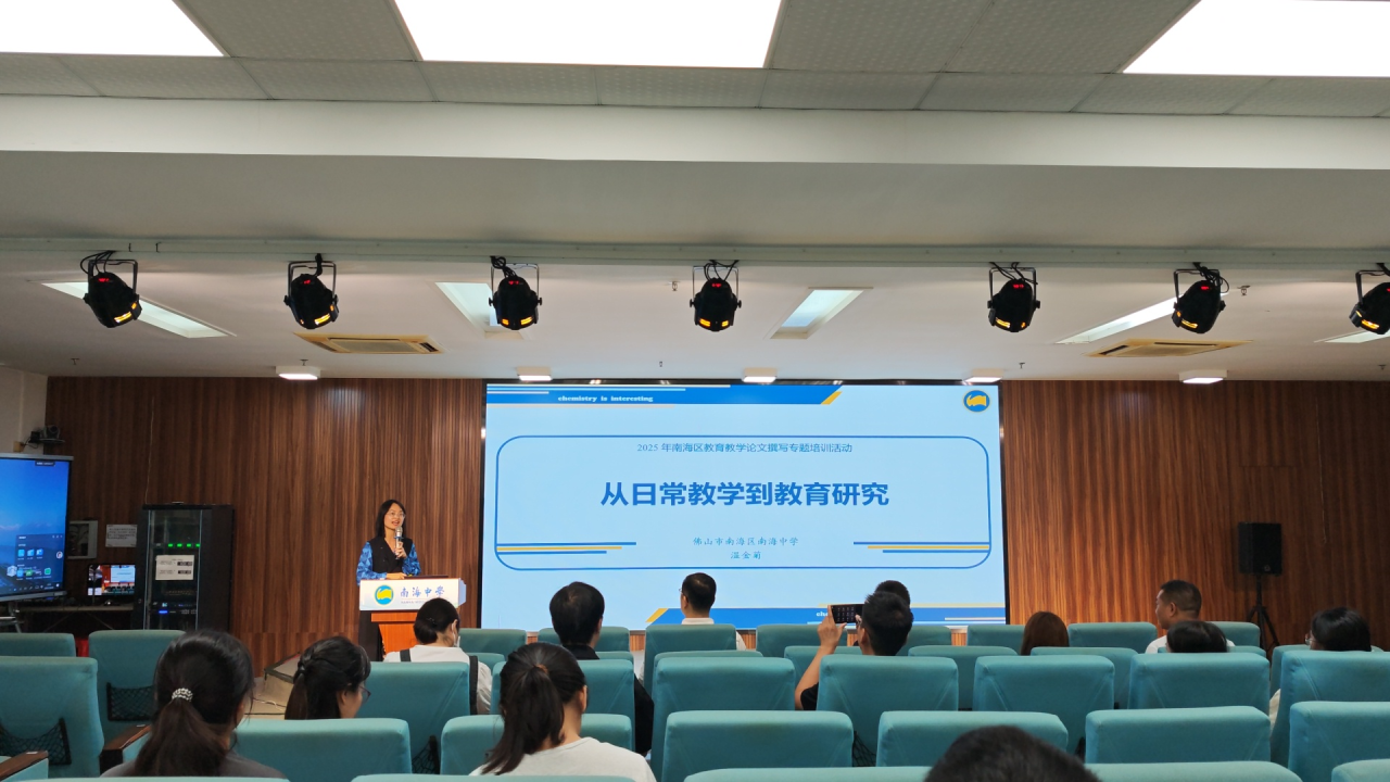 图1 南海区教育发展研究中心(教师发展中心)活动通知 “1+8”套餐教研理论与实践:破解全学段教学研究痛点 基于一节公开课开展8个微研究,形成文献综述、教学设计、讲课PPT、说课PPT、学案、教学论文、微课、五点量表等8个成果。符合一线教师思维、省时高效且适配各类课堂,能助力全学段全学科教师将日常教学材料转化为研究资源,破解 “备课耗时、成果碎片化” 难题。 温金菊《从日常教学到教育研究》专题培训 温金菊老师作为钱门弟子,长期深耕“1+8”套餐的实践,此次培训结合了钱扬义教授课题组的系列成果,从 “日常教学灵感挖掘” 到 “论文成果落地”,为教师们拆解可直接复用的操作路径: 01 备课预设成果 备课时即规划8类成果方向,如高中化学“自热包原理”课,同步设计文献综述、探究学案、素养测试题等,最终整合为论文。 02 紧扣课标教材 强调指导教师要重视教材课标,从课标提炼主题,如 “水的净化” 课, “能运用实验方法探究物质性质”,生成 “过滤操作微课”、“水质检测实验报告” 等成果。 03 论文撰写指导 讲解“4+1”写作模式,以教学设计、测评数据为基础,结合核心期刊案例,提炼创新点,避免论文空泛。