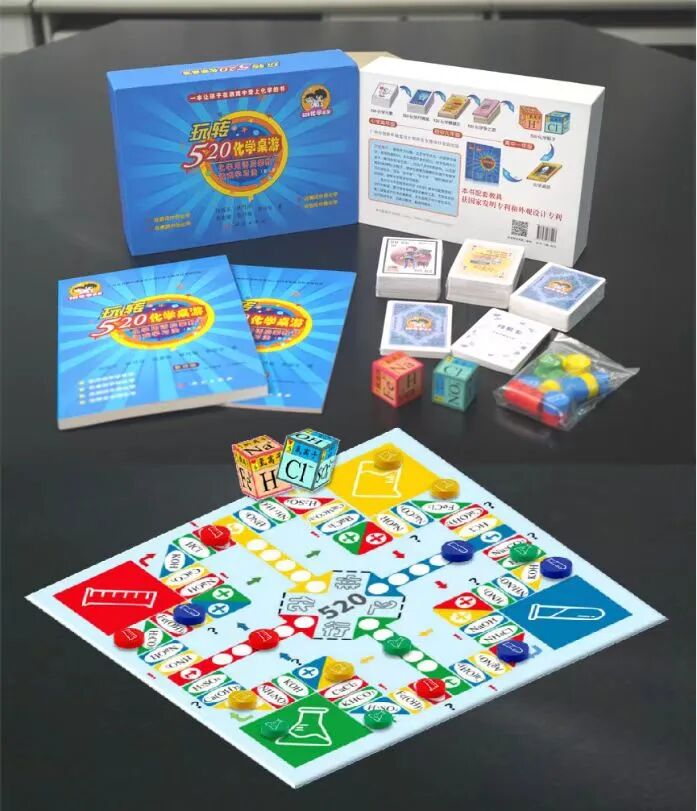 图8 《手持技术数字化化学实验教学研究 : 理论构建与创新实践》及其购买码 03 《玩转“520化学桌游”:化学用语启蒙教育游戏学习法》 “520化学桌游”具备内涵丰富的书籍与配套教具,包括大小册子两本书(教师版和学生版)、自主开发的6款游戏,以及配套的5副扑克牌、1对骰子和1副飞行棋,使学生能够在健康的环境下有效学习化学、普及科学知识,实现“玩中学”“快乐学”“随时随地学”的目标,破解化学用语学习难题。